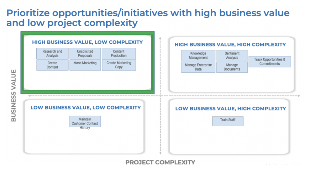 In the rapidly evolving world of generative artificial intelligence (AI), businesses find themselves at a crossroads. Generative AI, with its ability to create new content and provide innovative solutions, presents an array of opportunities. However, diving into this technological revolution requires meticulous planning and strategic prioritization. In this post, we’ll explore how to assess and prioritize generative AI capabilities that align with your organization’s business criteria, adhere to responsible AI principles, and fit within your company’s capacity to deliver successful projects. Download this AI Execution Capability Assessment Tool to create a scalable AI deployment. This tool will help you prioritize your AI proof of concept to get the most out of the technology.